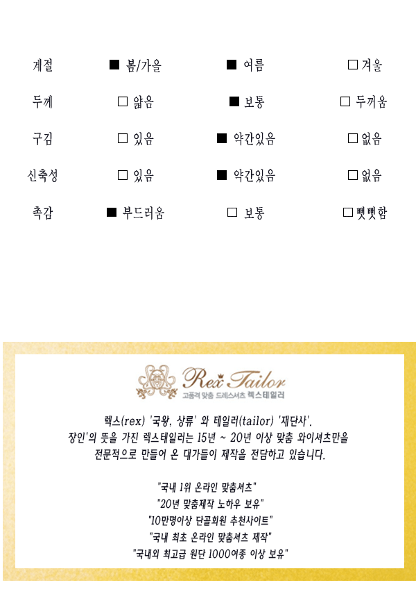 * 저희는 맞춤을 전문으로 하는 업체로서 최고의 편안함과 만족감을 드리기 위해 깐깐한 제조공정으로 제작되어지고 * 상세그림의 넥타이와 커프스링크는 배송되지 않습니다. |
